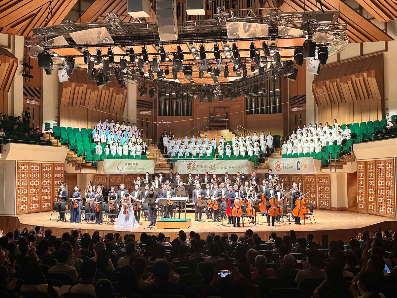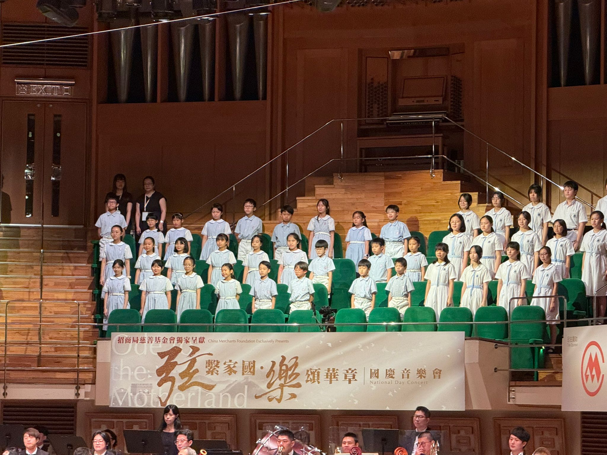 啟基學校合唱團獲香港弦樂團之邀,於10月18日晚在香港文化中心舉行的「弦繫家國·樂頌華章」國慶音樂會上登台獻唱。作為壓軸環節,合唱團與其他中學合唱團聯袂演出,獲得滿場掌聲。演出結束後,全體團員與著名小提琴家姚珏博士、指揮家林大葉及諸位嘉賓合影留念。