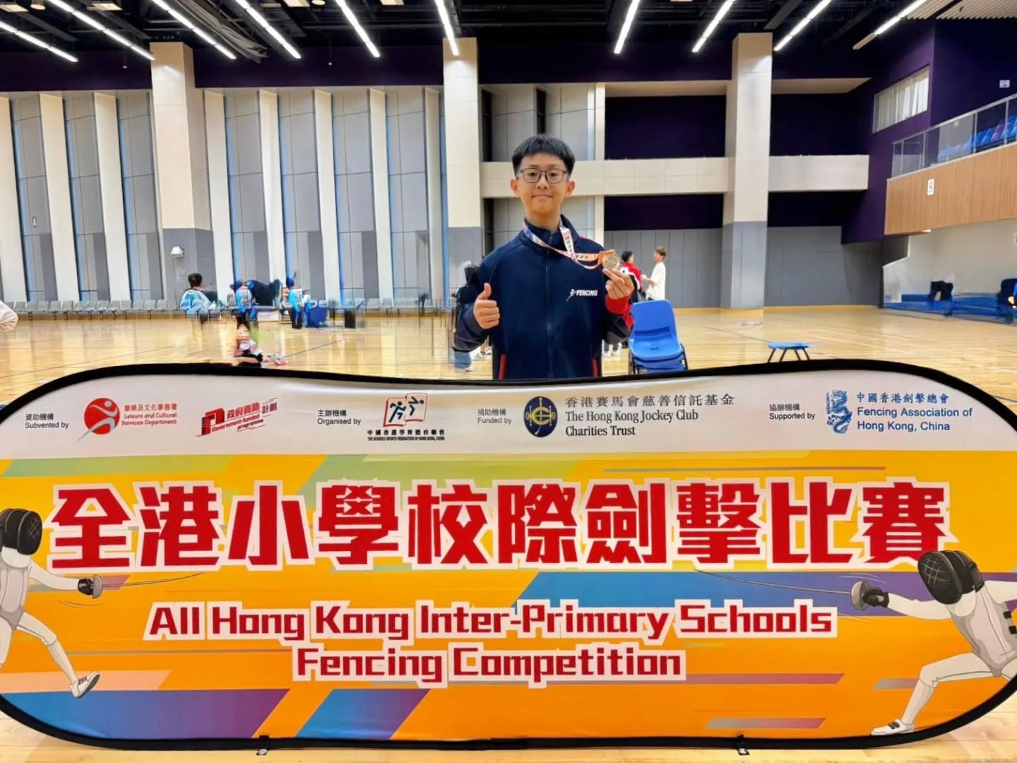 恭賀本校黃子力同學勇奪全港小學校際劍擊比賽,男子公開組佩劍亞軍