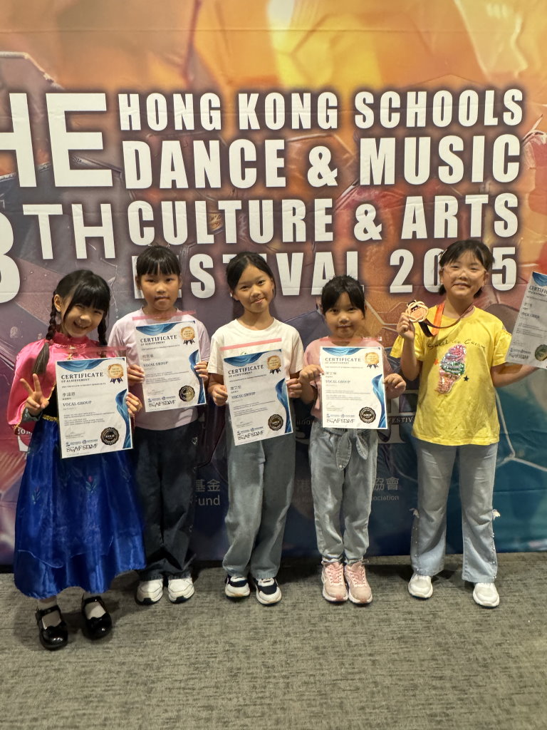 本校學生參與「第13屆全港學界舞蹈音樂節2025」,於親子及9–11歲組別表現突出,勇奪多項金獎: